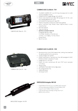 Ÿ The AMEC CAMINO-701 is an AIS Class A transponder for both Ÿ Globally approved Class A AIS transponder